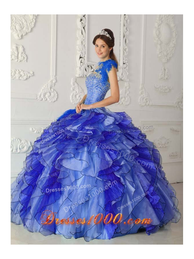 Discount Royal Blue Puffy Strapless for 2014 Beading Quinceanera Dress with Ruffles