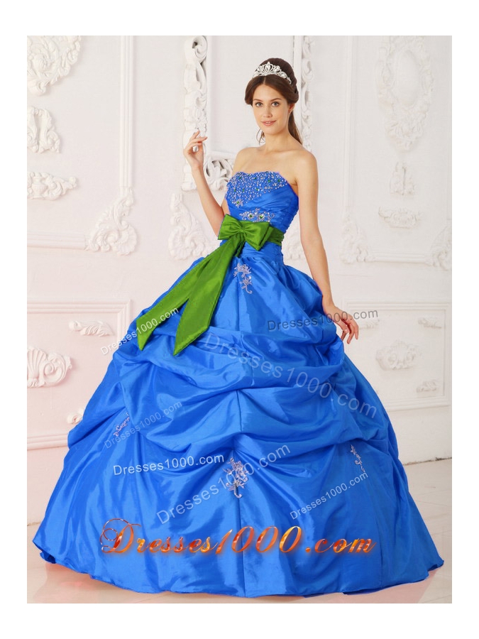 2014 Brand New Blue Puffy Strapless Beading and Sashes Quinceanera Dress