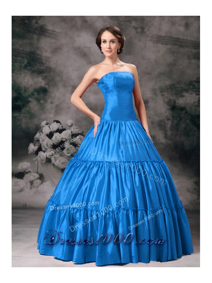 Aqua Blue Ball Gown Strapless Floor-length Taffeta Ruched Quinceanera Dress for 2014
