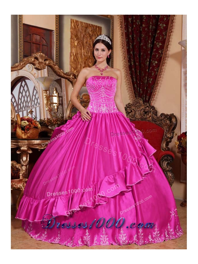 Exclusive Strapless Taffeta Full Length Quinceanera Dress with Appliques