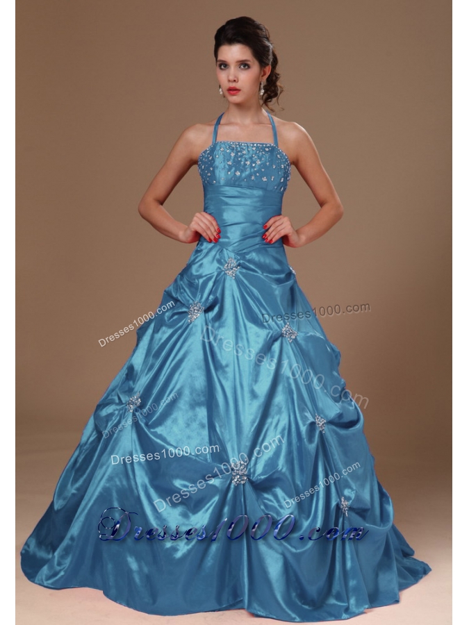 2014 Pick-ups Halter Quinceanera Dresses Princess in Teal