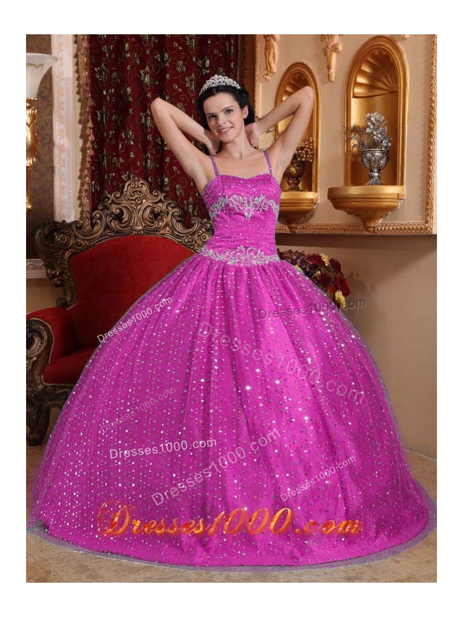 Spaghetti Straps Sequined and Appliques Quinceanera Dress for 2014