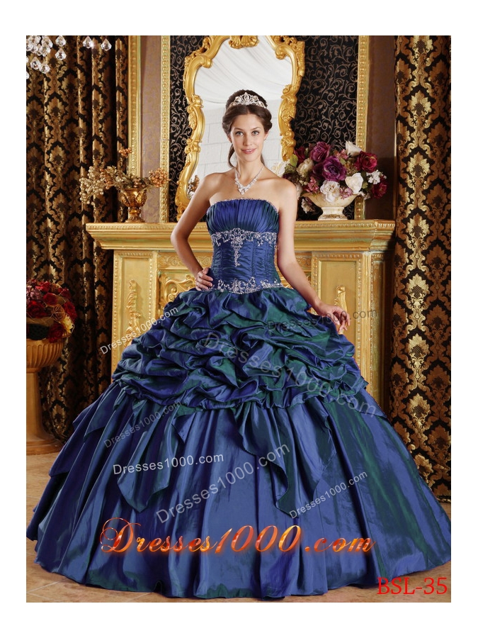 2014 Purple Puffy Strapless Pick-ups Taffeta Quinceanera Dress with Appliques