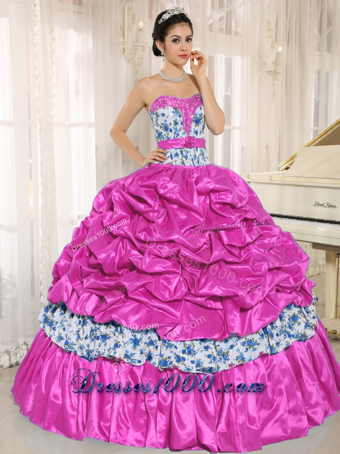 Exclusive Beading and Pick-ups Taffeta Quinceanera Gown with Printing