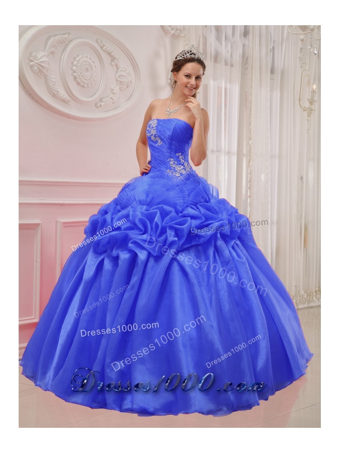 2014 Blue Puffy Strapless Ruching and Beading Quinceanera Dress with Pick-ups