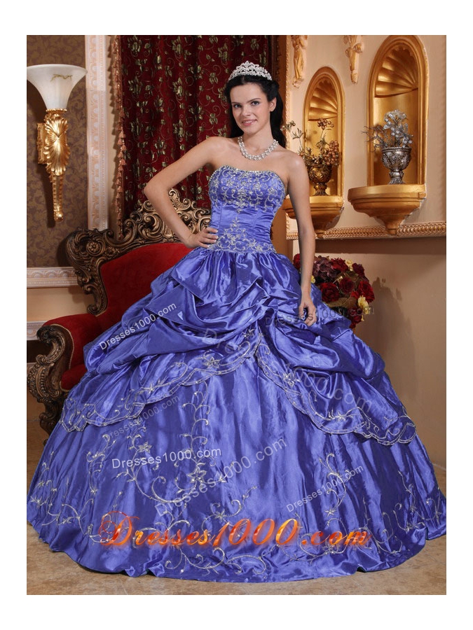 2014 Beautiful Purple Puffy Strapless Embroidery Quinceanera Dress with Beading