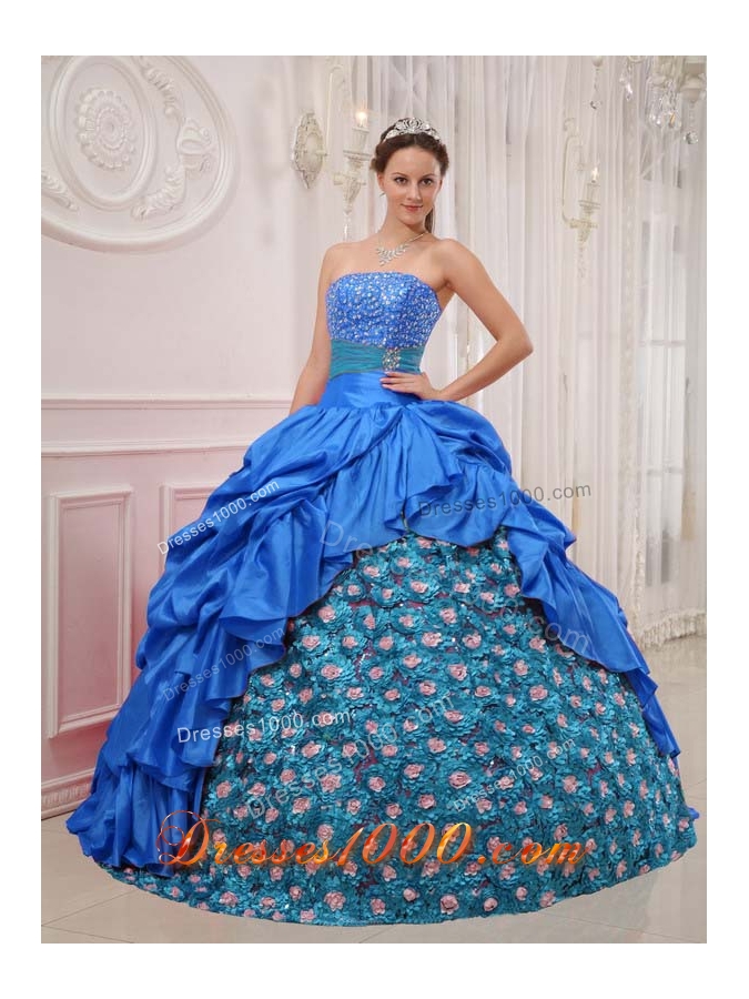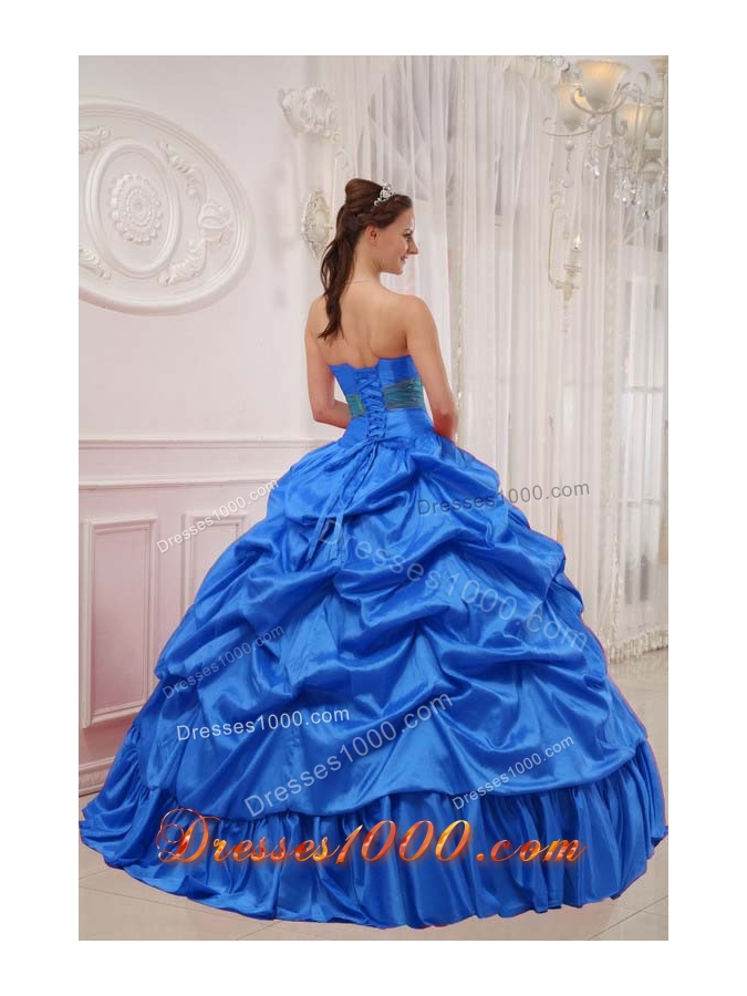 2014 Popular Blue Puffy Quinceanera Dress Strapless with Beading and Pick-ups
