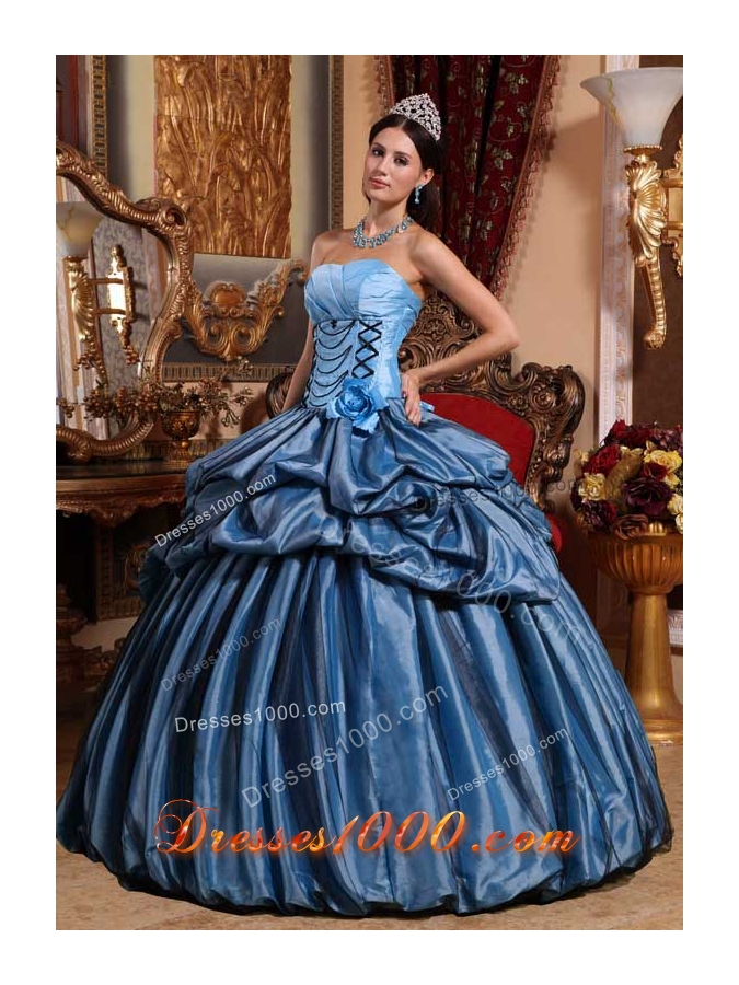 Aqua Blue Puffy Strapless for 2014 Hand Made Flower Quinceanera Dress with Pick-ups