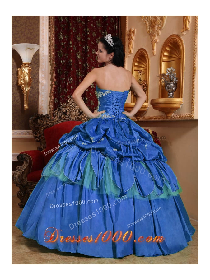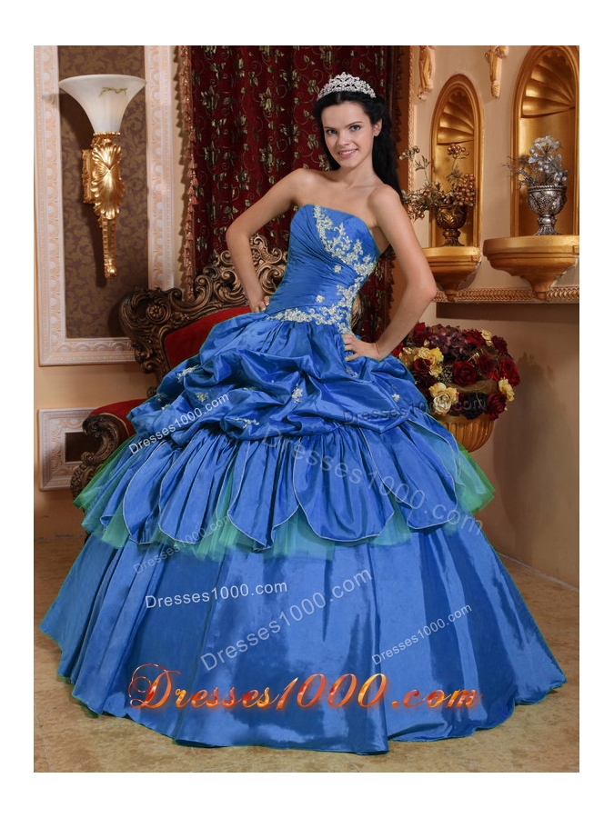 Quinceanera Dress in Blue Puffy for 2014 Strapless with Appliques and Pick-ups