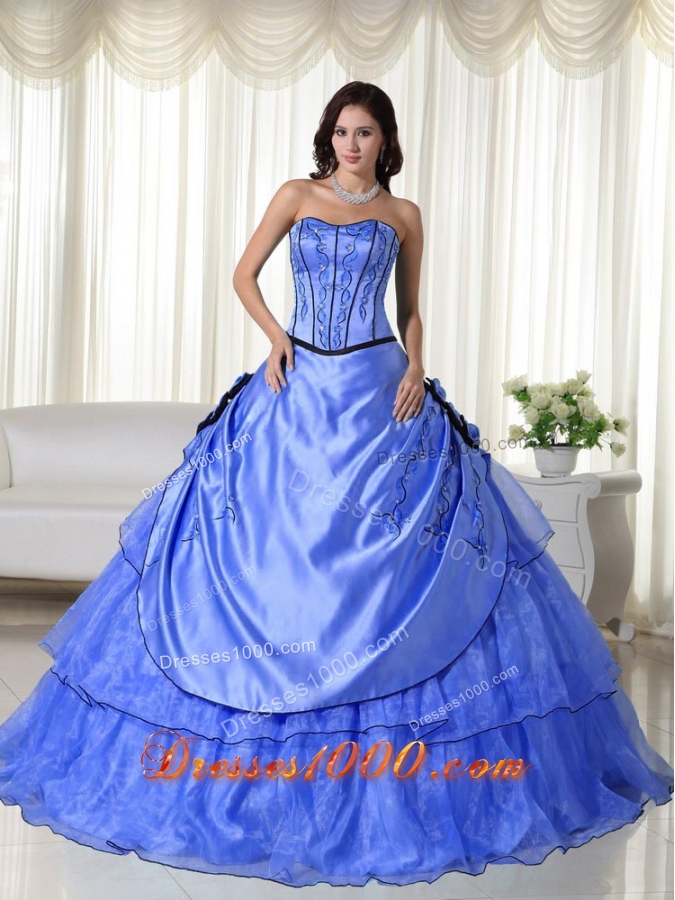 2014 Blue Puffy Strapless Beading Quinceanera Dress with Appliques