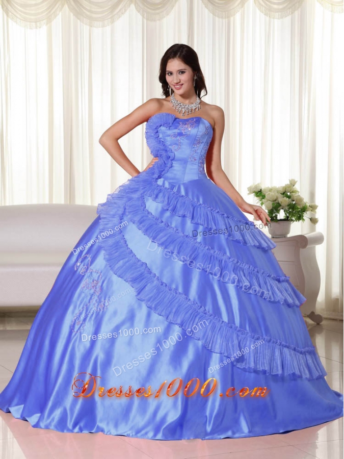Beautiful Blue Ball Gown Strapless Embroidery for 2014 Quinceanera Dress