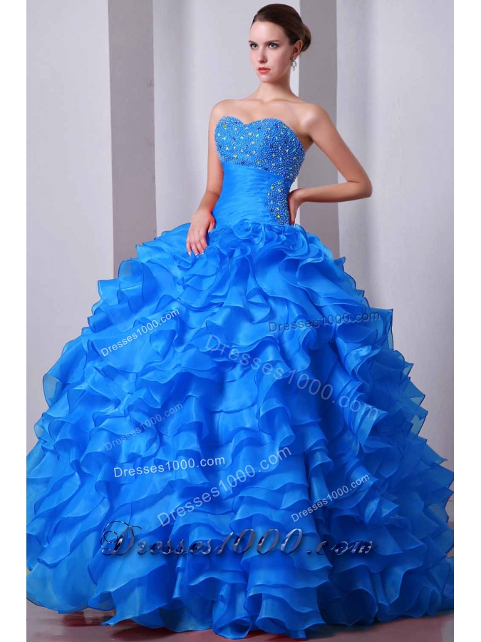 Quinceanea Dress in Aqua Blue Princess Sweetheart with Beading and Ruffles