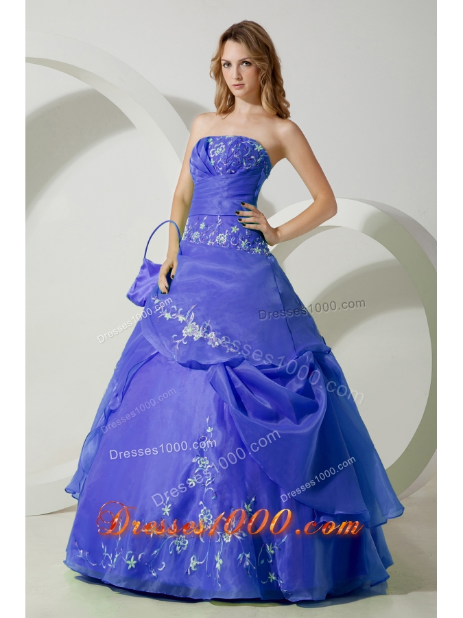 2014 Affordable Purple Puffy Strapless with Chiffon Embroidery Quinceanera Dress