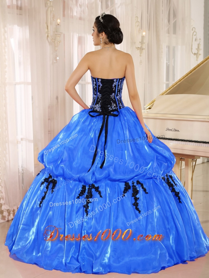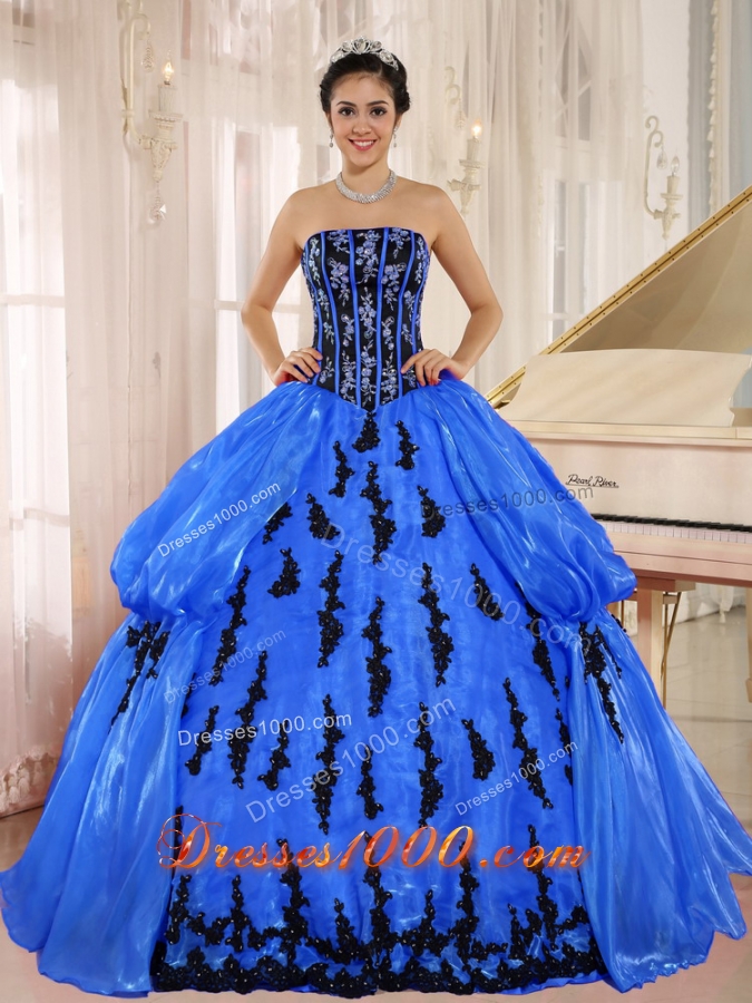 Blue 2014 New Arrival Strapkess Embroidery Decorate For Quinceanera Dress