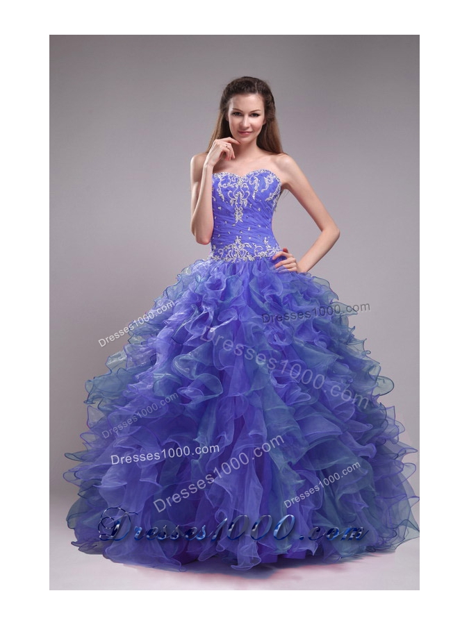 Sweetheart Blue Sweet Sixteen Dresses with Ruffles and Appliques