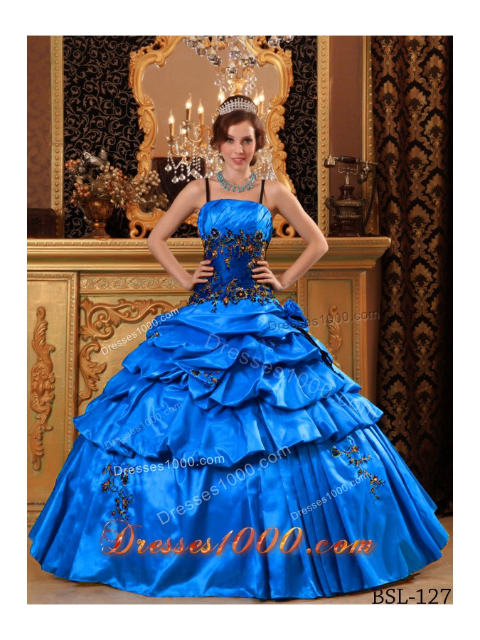 Elegant Blue Puffy Straps For 2014 Appliques Quinceanera Dress