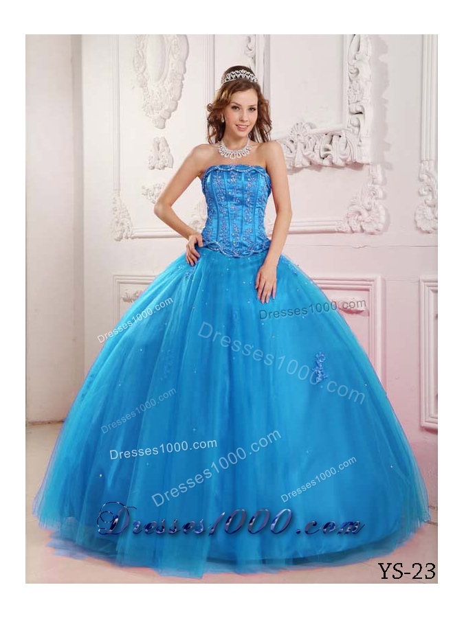 Elegant 2014 Teal Puffy Quinceanera Dress with Appliques and Beading