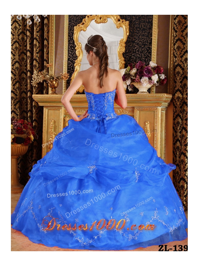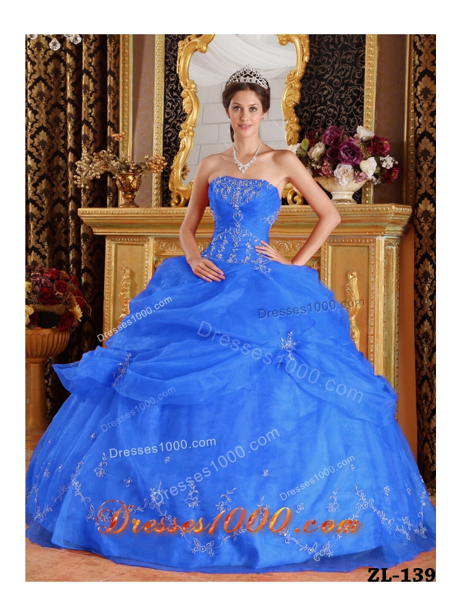 2014 Lovely Blue Puffy Strapless Quinceanera Dress with Beading and Appliques