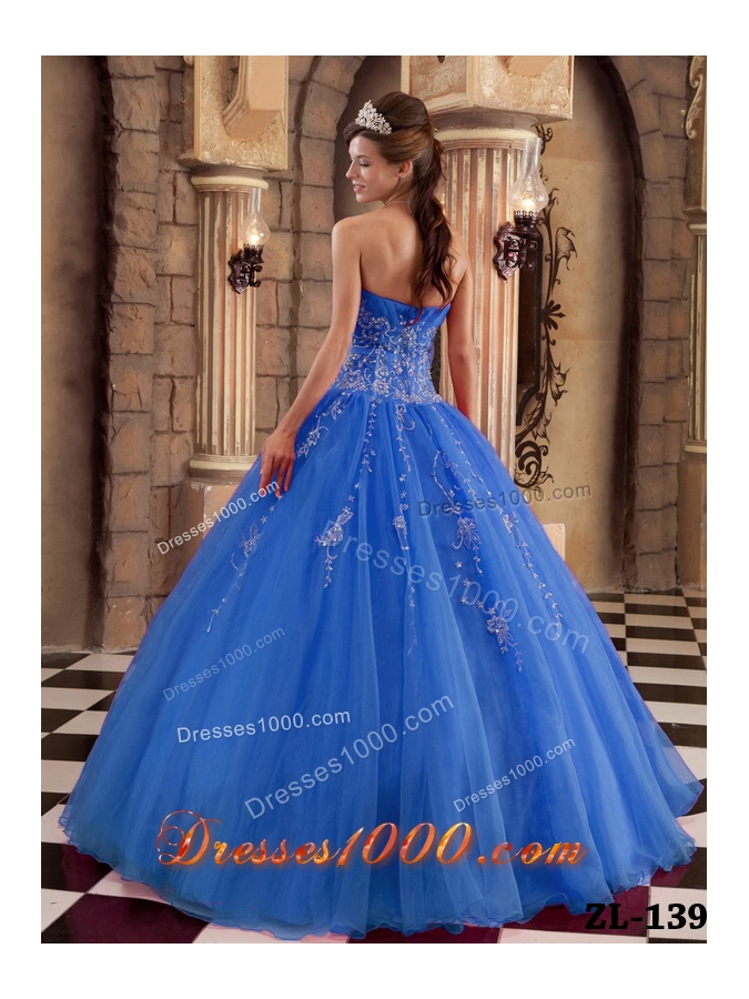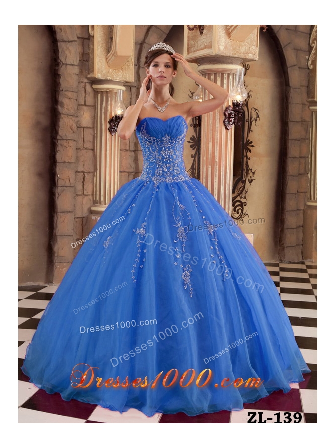 2014 Popular Blue Puffy Beading Quinceanera Dress with Appliques