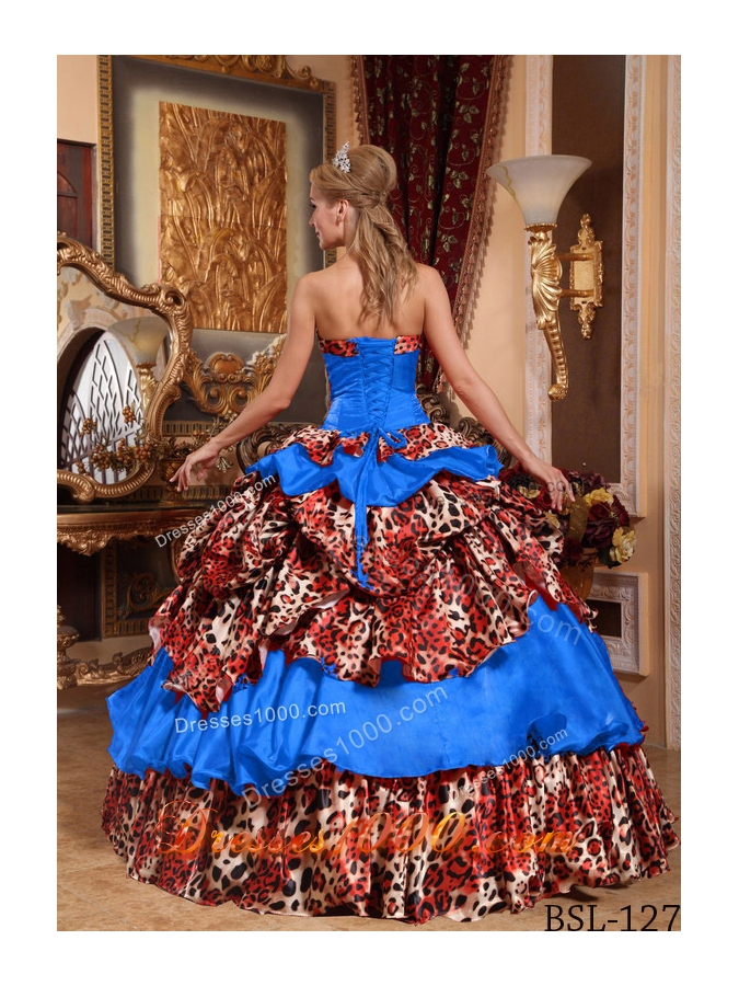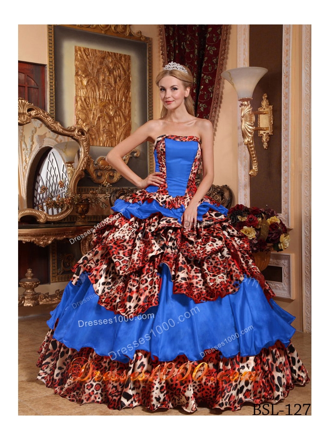 2014 Fashionable Blue Puffy Strapless Quinceanera Dress with Taffeta and Leopard Pick-ups