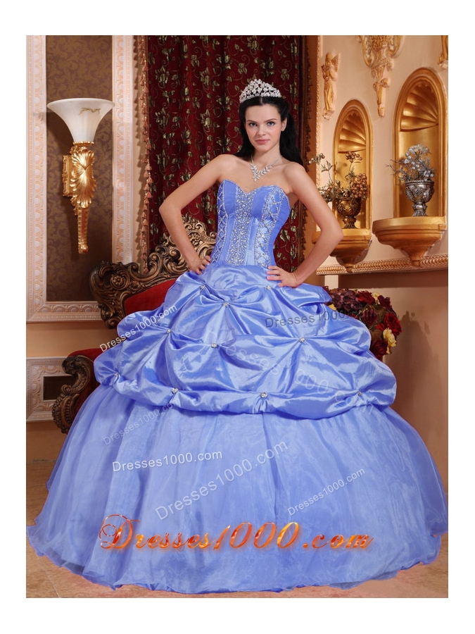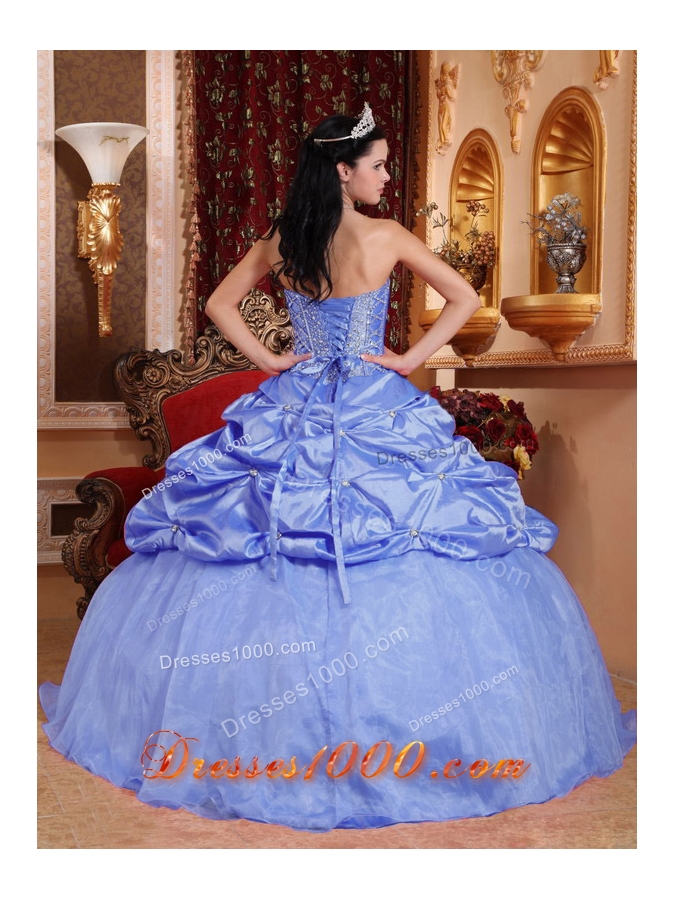 2014 Exclusive Blue Puffy Sweetheart Beading Quinceanera Dress with Pick-ups