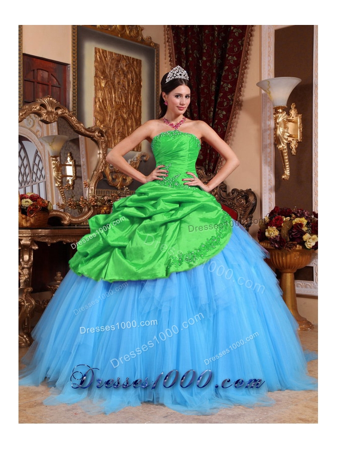 2014 Colourful Quinceanera Dress Puffy Strapless with Appliques and Beading
