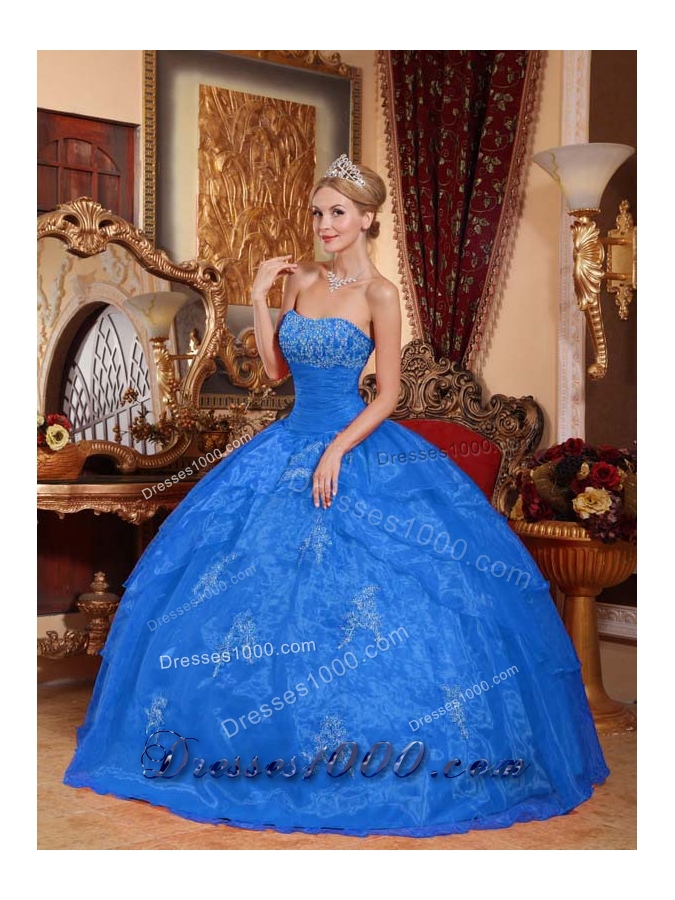 Affordable Blue Puffy Strapless for 2014 Appliques Quinceanera Dress