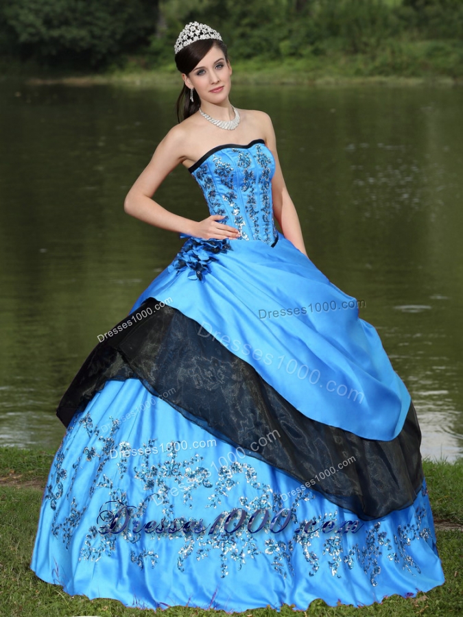 Hot Aqua Blue For 2014 Quinceanera Dress with Hand Made Flowers and Emdroidery