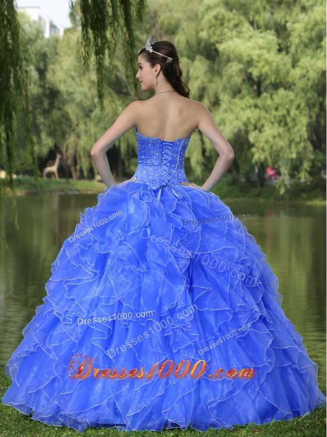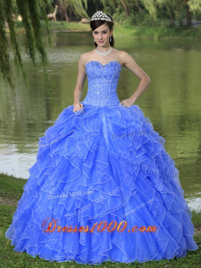 2014 Pretty Quinceanera Dress With Beading and Ruffles Layers over Sweetheart Blue Skirt