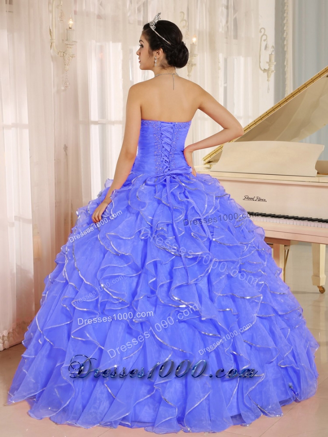 2014 Cute Quinceanera Dress with Ruffles and Beading in Blue Custom Made