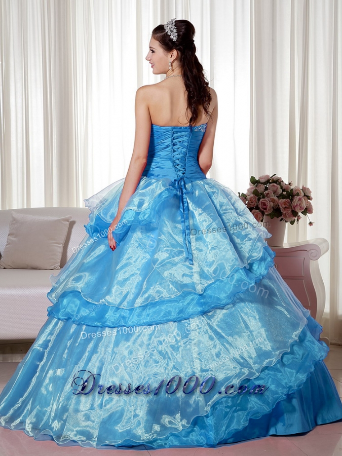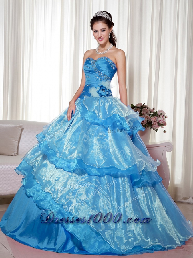 2014 Aqua Blue Puffy Sweetheart Quinceanera Dress with Beading and Hand Made Flower