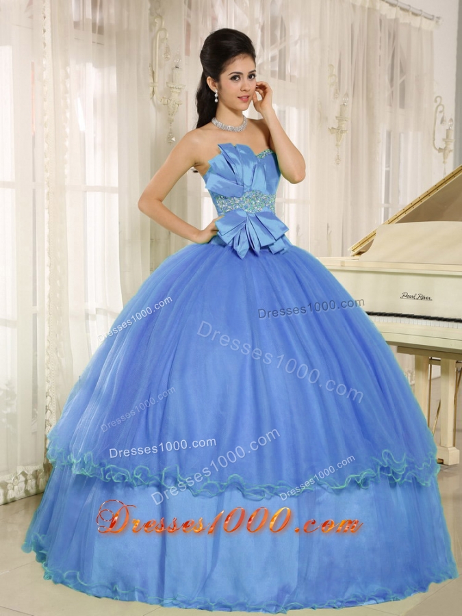 2014 Lovely Quinceanera Dress with Beading and Bowknot For Blue Custom Made