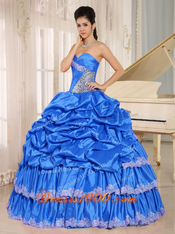 2014 Aqua Blue Beaded Appliques and Pick-ups Quinceanera Dress For Custom Made