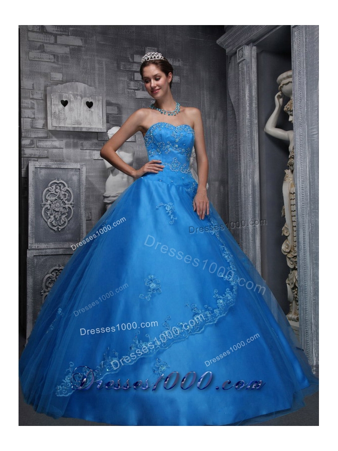 2014 the Super Hot Blue Sweetheart Lace Quinceanera Dress with Beading and Appliques