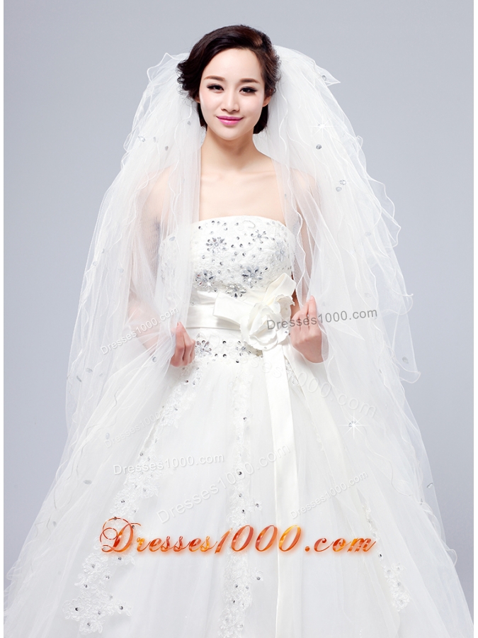 Elegant White Angle Cut Multi-Tier Finished Edge Bridal Veils