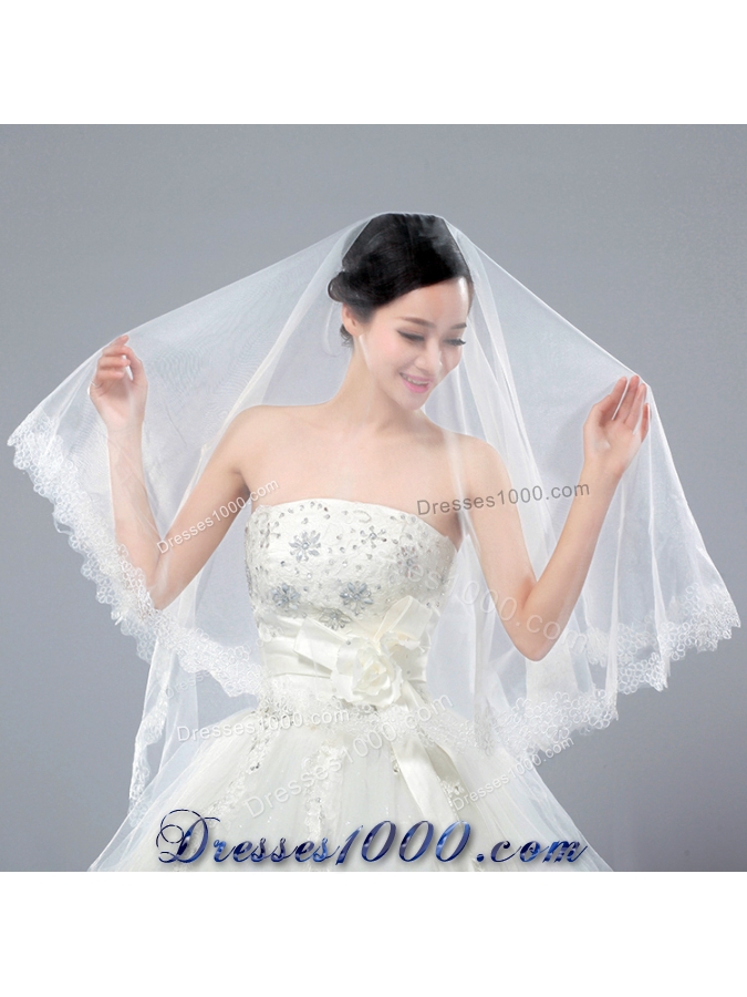 One-Tier Angle Cut Wedding Veils with Lace Appliques Edge