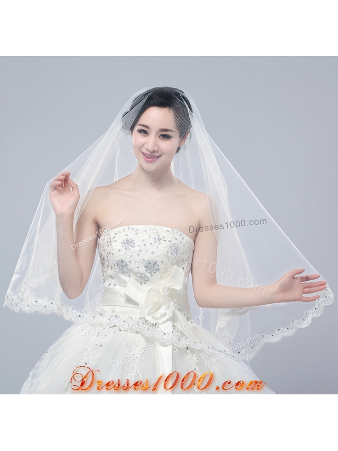 Angle Cut Two-Tier Lace Appliques Edge Chapel Bridal Veils