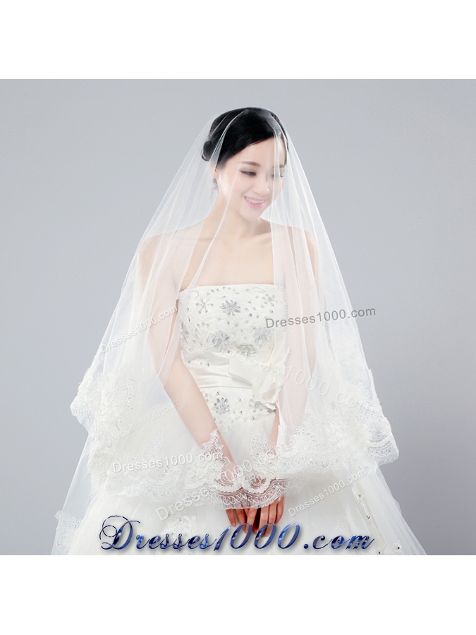 Two-Tier Drop Veil Tulle Lace Appliques Edge Wedding Veils