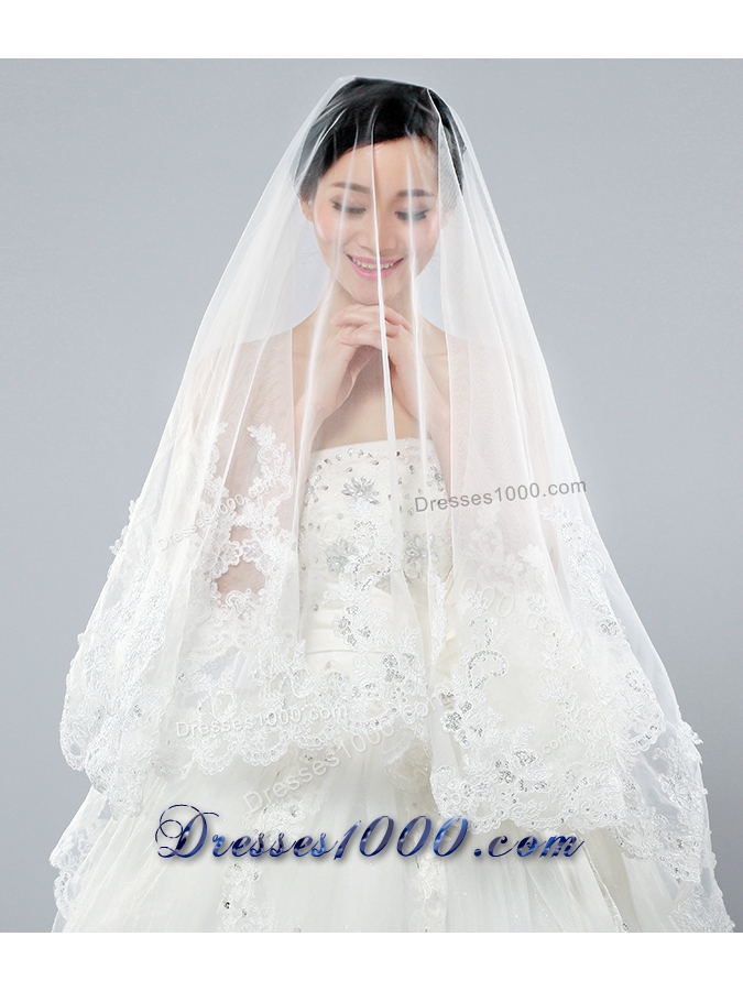 Discount Two-Tier Classic Wedding Veils with Lace Edge