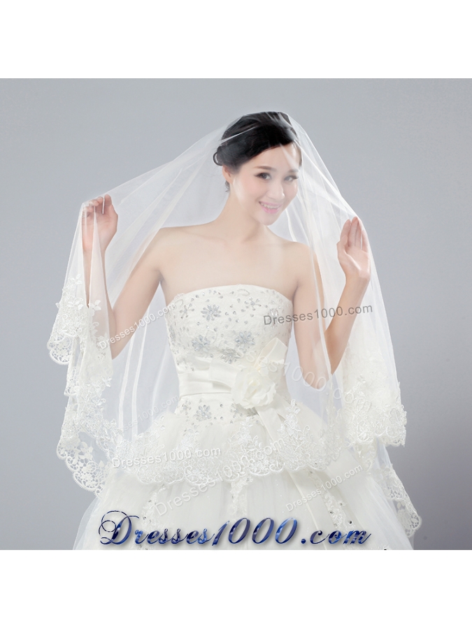 2014 One-Tier Tulle Wedding Veils with Scalloped Edge