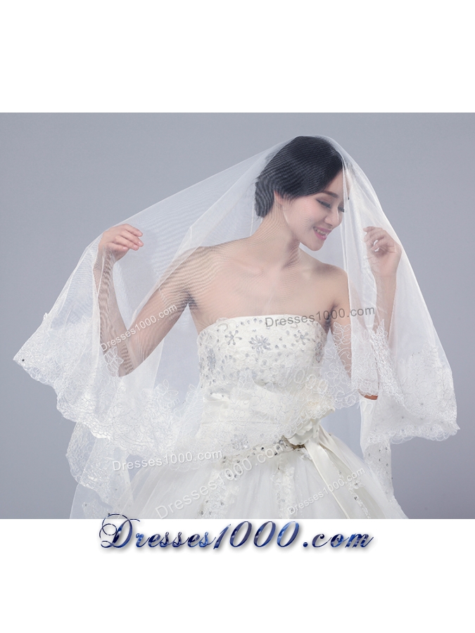 2014 One-Tier Tulle Lace Drop Veil Edge Bridal Veils