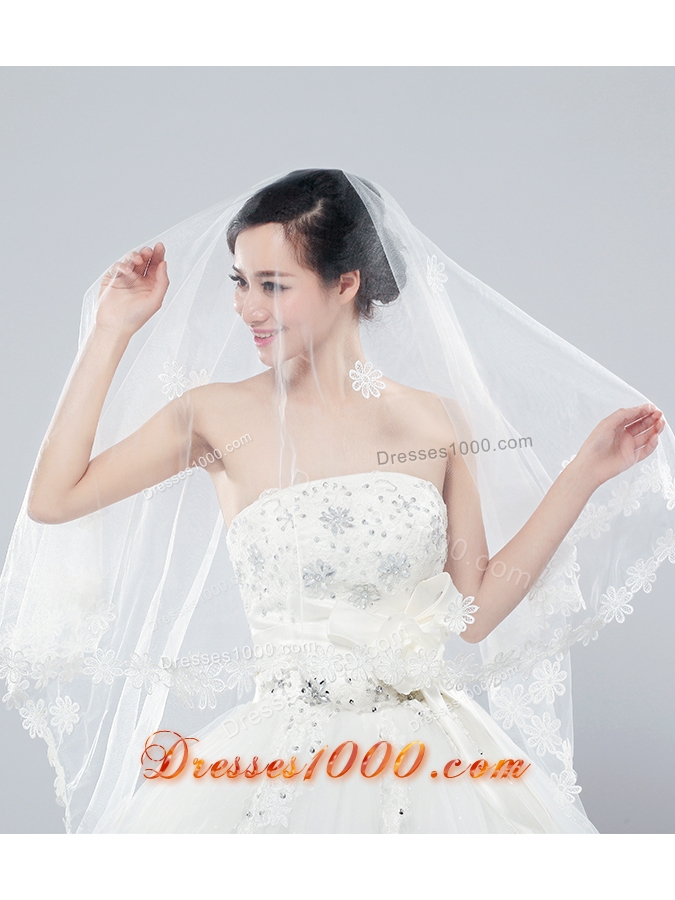 2014 Two-Tier Tulle Elbow Veils with Lace Edge