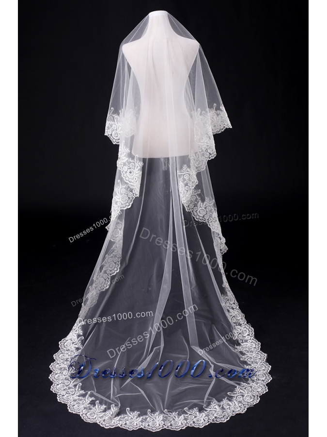 2014 Simple One-Tier Bridal Veils with Lace Appliques Edge