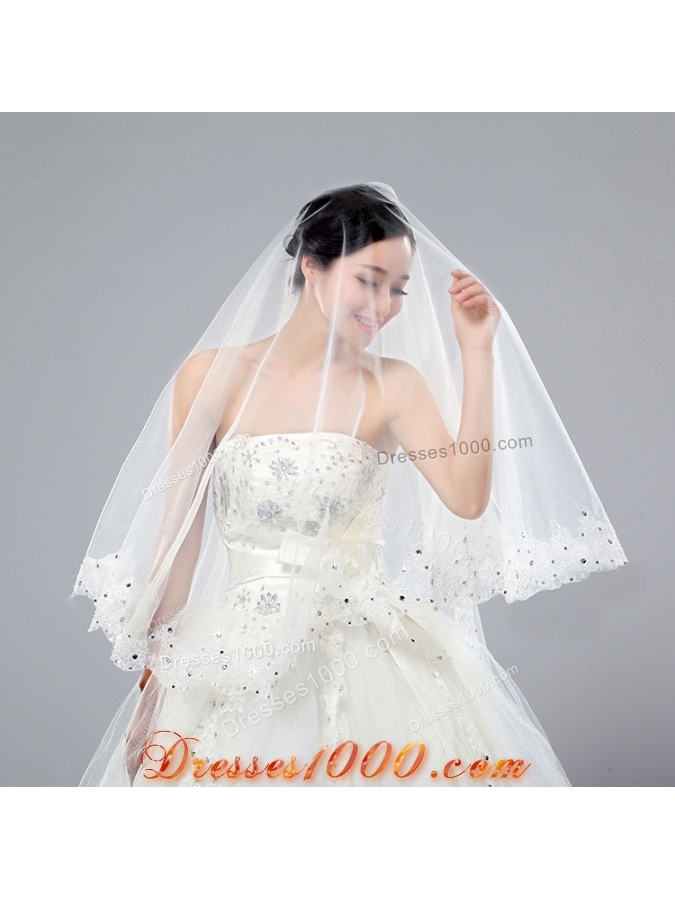 One-Tier Cut Edge White Classic Chapel Bridal Veils
