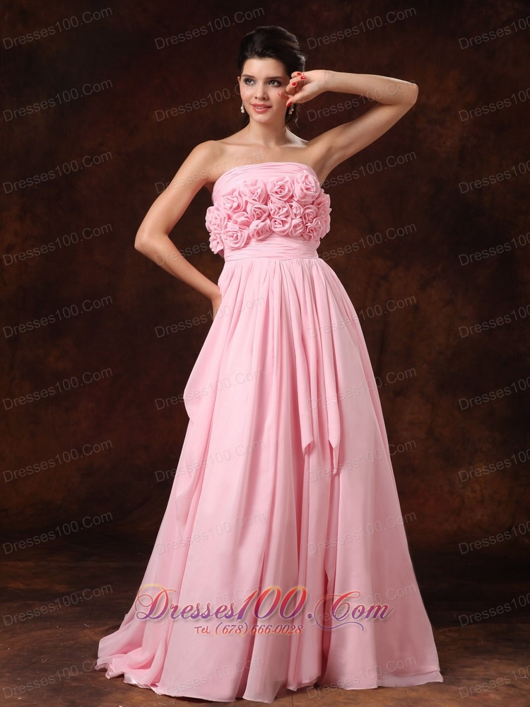 Luxury Handle Flowers Pink Bridal Dresses Empire Ruffles