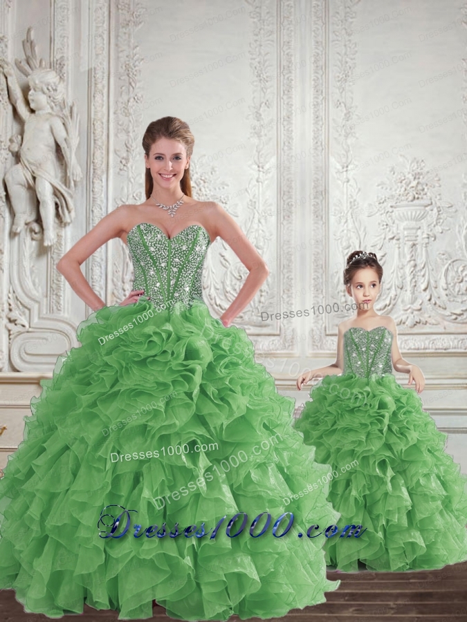 Remarkable Beading and Ruffles Green Princesita Dress for 2015 Spring