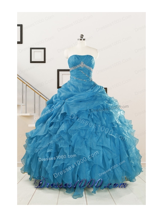 2015 Elegant Strapless Blue Quinceanera Dresses with Beading and Ruffles