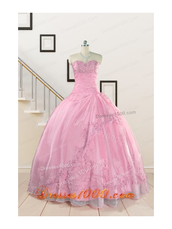 Pretty Baby Pink Quinceanera Dresses with Beading and Appliques for 2015