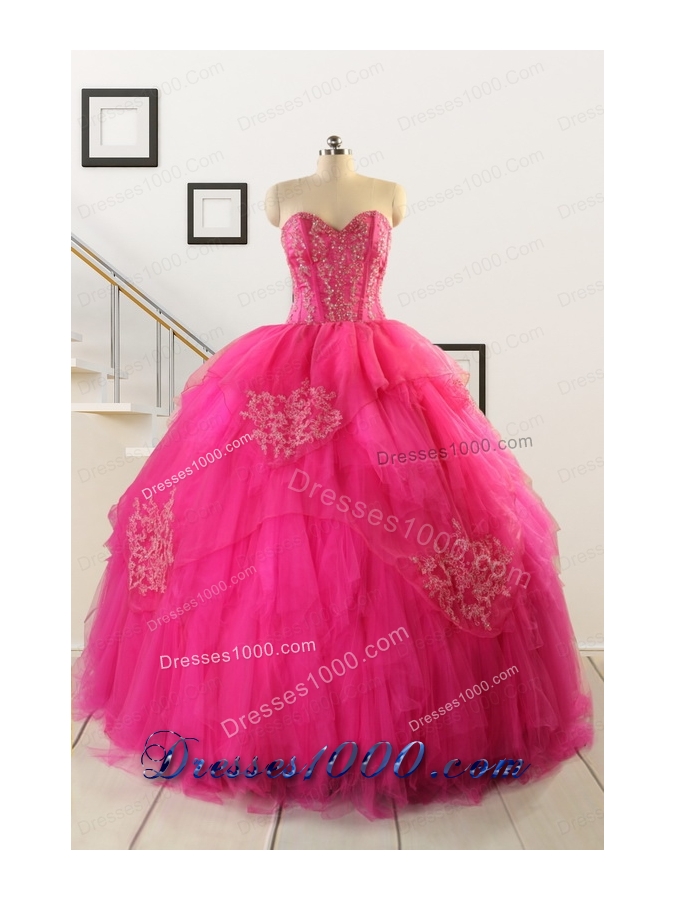 2015 Pretty Appliques Dresses For 15 in Hot Pink