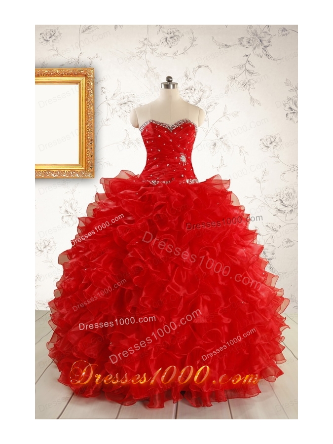 Pretty Ball Gown Sweetheart 2015 Red Quinceanera Dresses with Beading